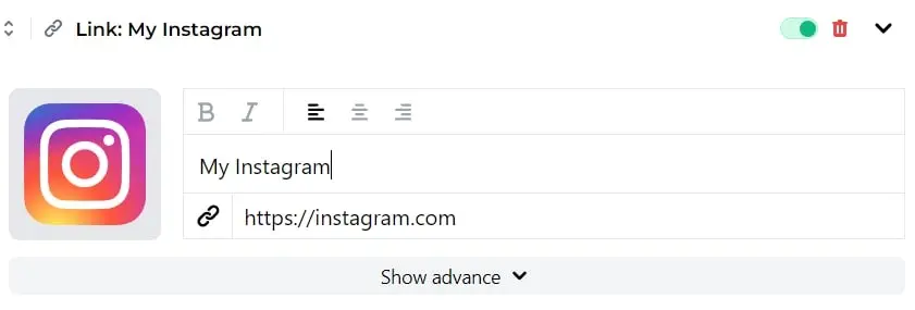 2. Fill your button information, then click "Show Advance"