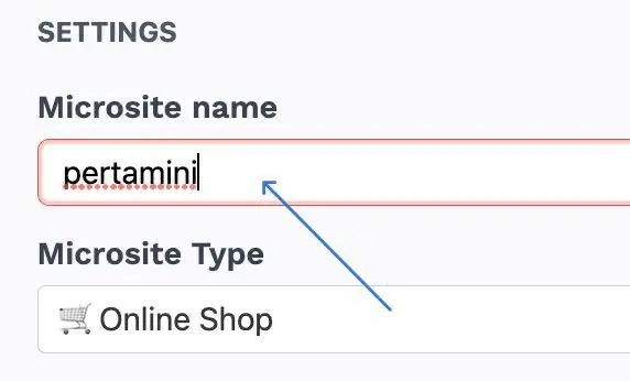 1. Type in the Microsite name as you wish