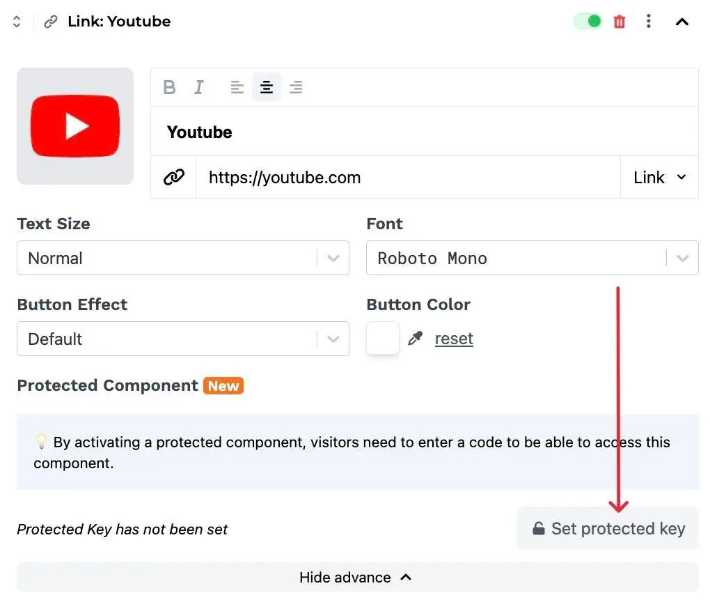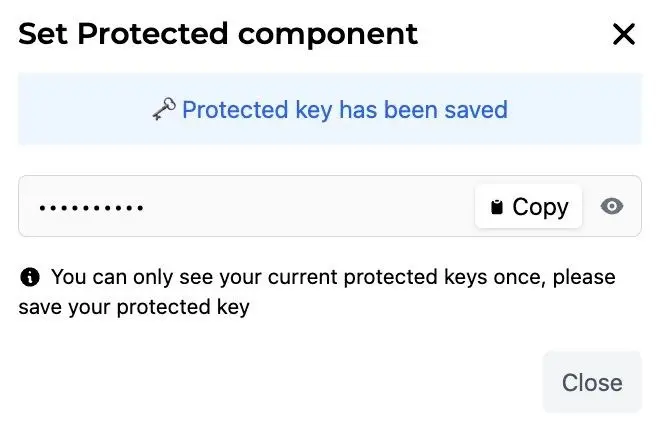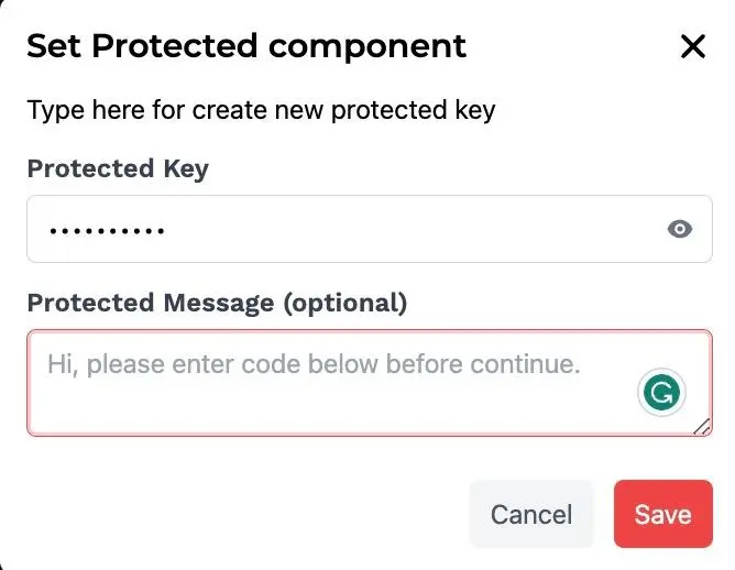 1. Fill in a password to protect your component as well as a protected message (optional) then click Save