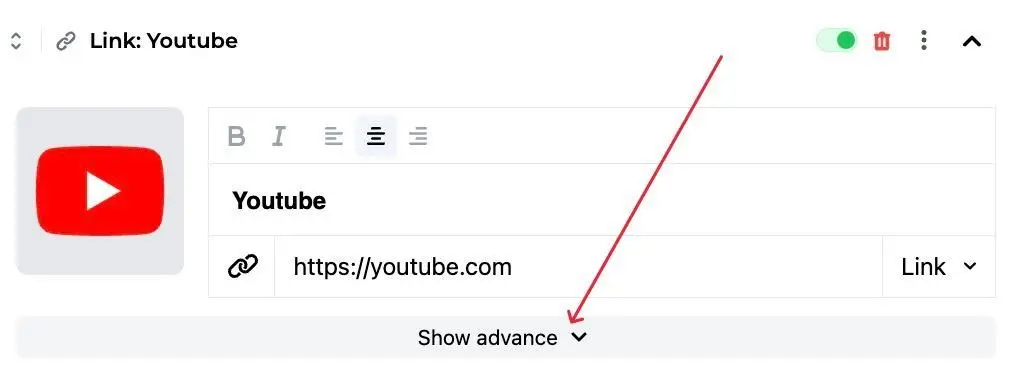 1. Click Show advance on the component