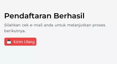 - Pendaftaran sukses. Silakan periksa email Anda untuk melanjutkan proses. Jika Anda tidak menerima email, klik Kirim Ulang.