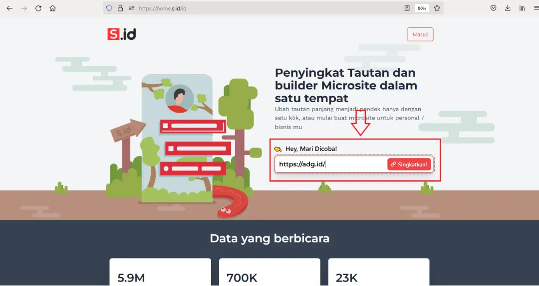 Silahkan masukkan Tautan Anda, lalu klik Singkatkan!
