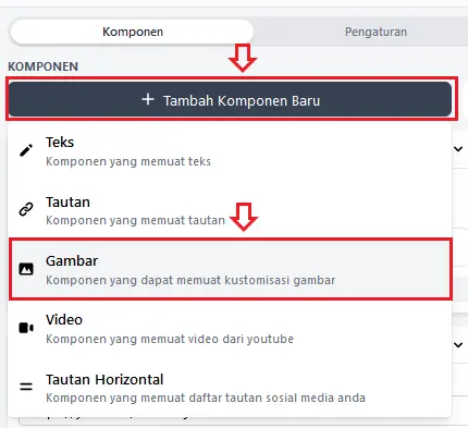 - Klik Tambah Komponen Baru, lalu klik Gambar.