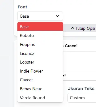 - Font, Ada beberapa pilihan jenis font yang bisa kamu pilih.