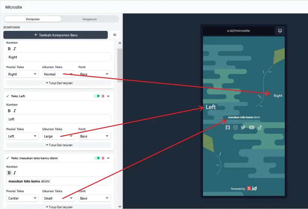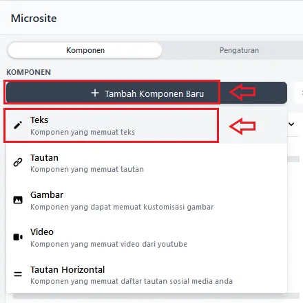 - Klik Tambahkan Komponen Baru > Teks.