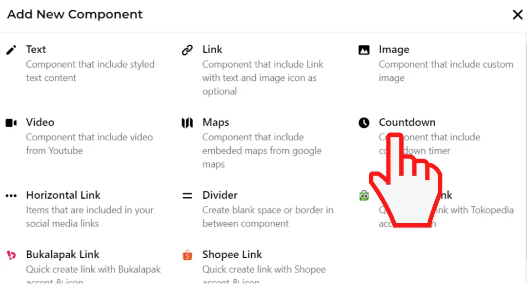 Sekarang kamu dapat menghitung mundur hari ke acara langsung dari layar microsite kamu! Komponen ini akan membantu visitor untuk mengingat kembali berapa lama waktu yang tersisa dari acara yang kamu buat.