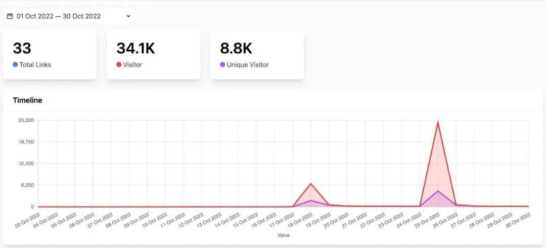 Sekarang untuk pengguna layanan Lite, bisa melihat statistik shortlink dan microsite 30 hari ke belakang.