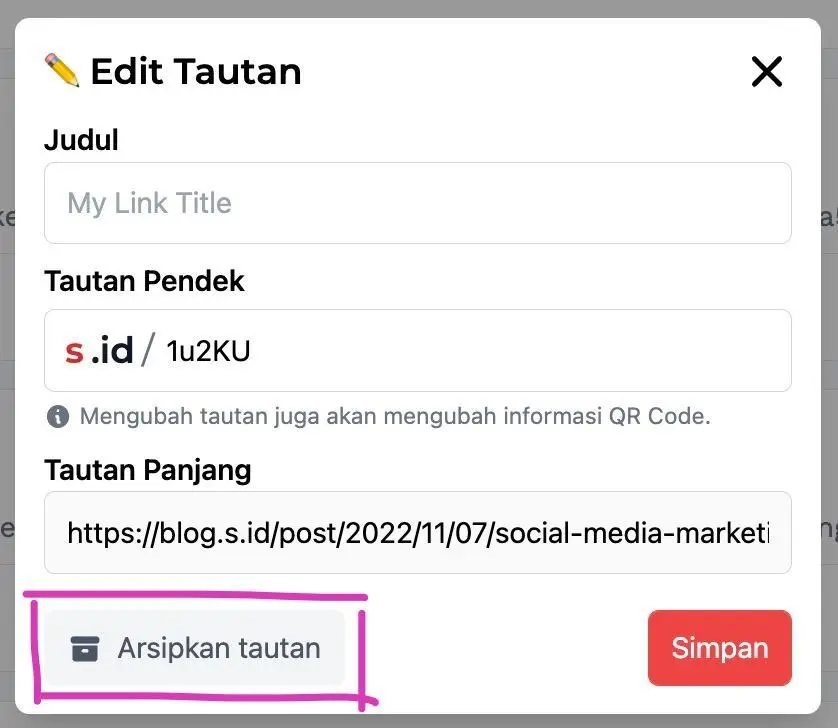 - Pilih Arsipkan tautan