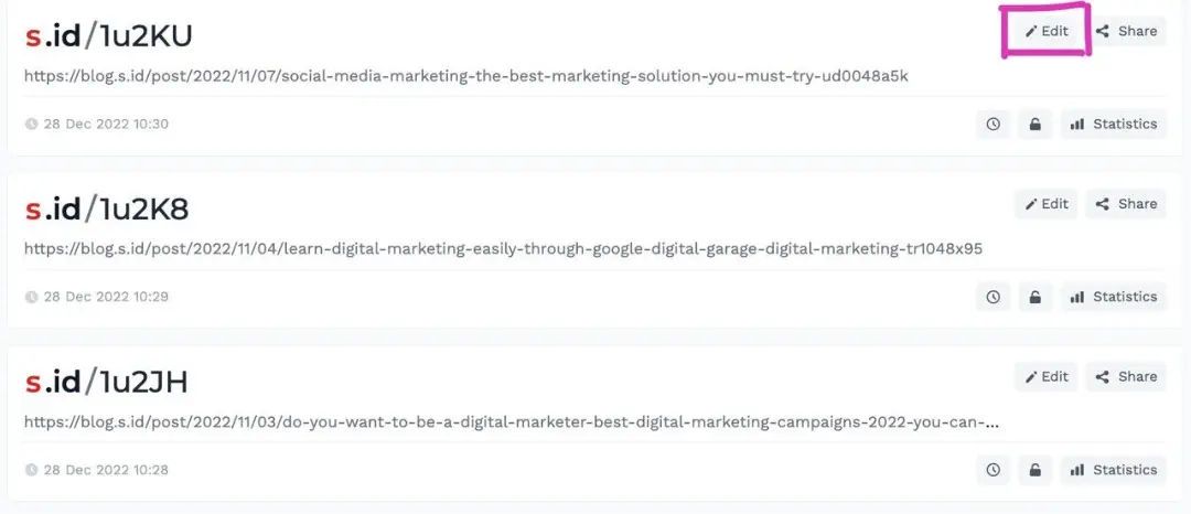 Berikut cara mengarsip link di S.id :
