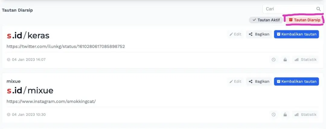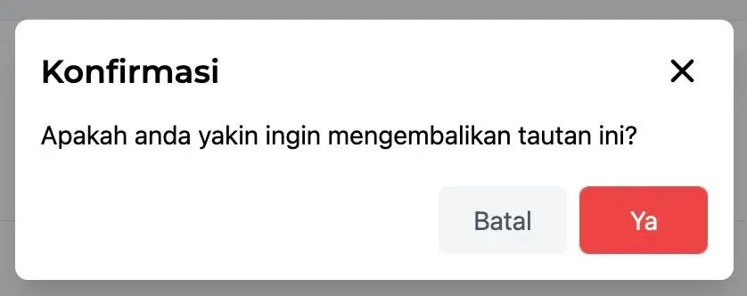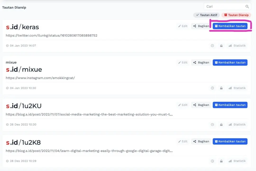 - Bisa search dahulu, kemudian klik "Kembalikan Tautan"