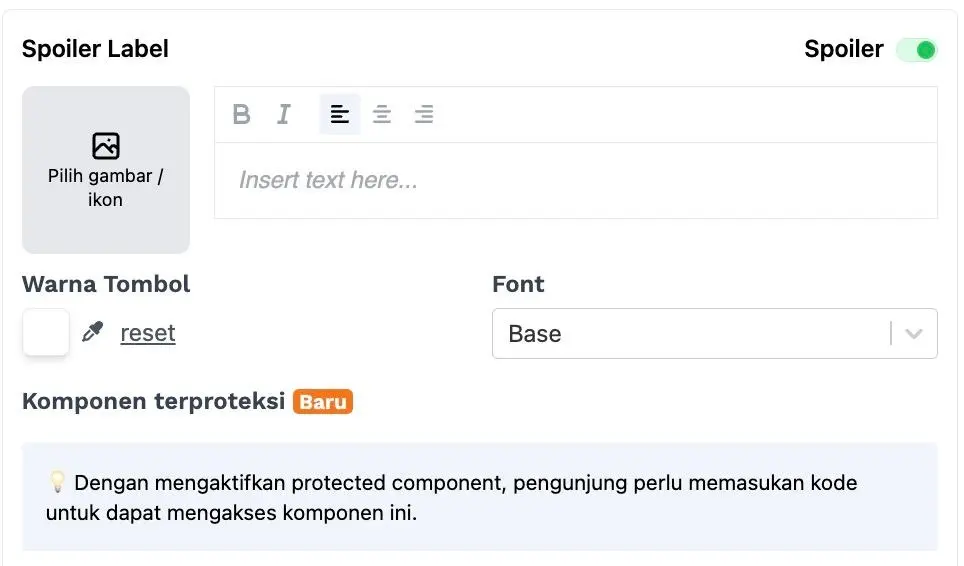 Anda juga bisa membuat slider di microsite anda spoiler dengan mencentang tombol spoiler