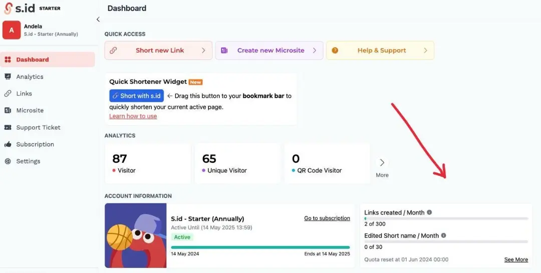 Scroll kebawah untuk pengguna mobile, maka anda menemukan informasi seputar kuota akun anda (Klik see more untuk detail)